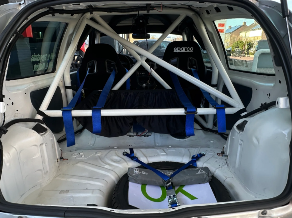 Deze Rally auto is voorzien van een Knaf certificaat bij de rolkooi!